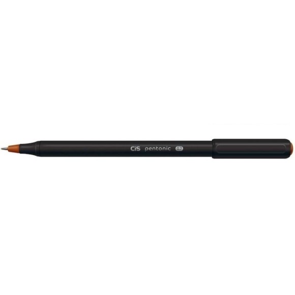 A caneta Cis Pentonic é uma caneta de design moderno e super macia de escrever. Tem o corpo da cor preta com textura fosca e ponta com o indicador da cor da caneta.