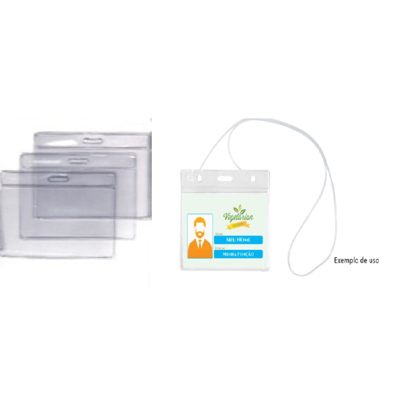 Composição: PVC, Papel Cartão / Medidas: 80mm  X 120mm / Cor: Transparente / Com Cordão / Pacote Com 100 Unidades