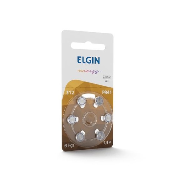 Marca: ELGIN / Modelo: 312 (Selo Marrom) / Tipo: Botão / Embalagem: 1 cartelas com 06 baterias / Aplicação: Compatível com TODAS as marcas de aparelhos auditivos / Tensão (V): 1,45 / Sistema Eletroquímico: Zinco-AR.