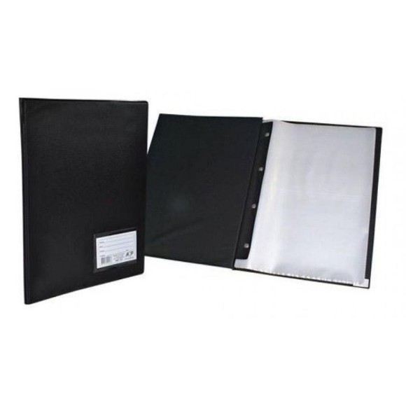 Pasta Catálogo / Cor: Preta / Contém 50 Plásticos / Medidas: 330 mm x 430 mm x 20 mm