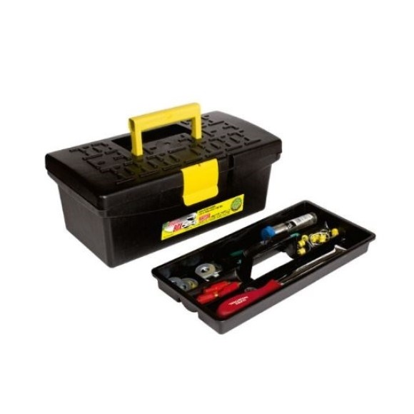 Caixa de ferramentas plástica com bandeja / Material: Polipropileno / Dimensão: 31,8cm x 17,4cm x 13,4cm.