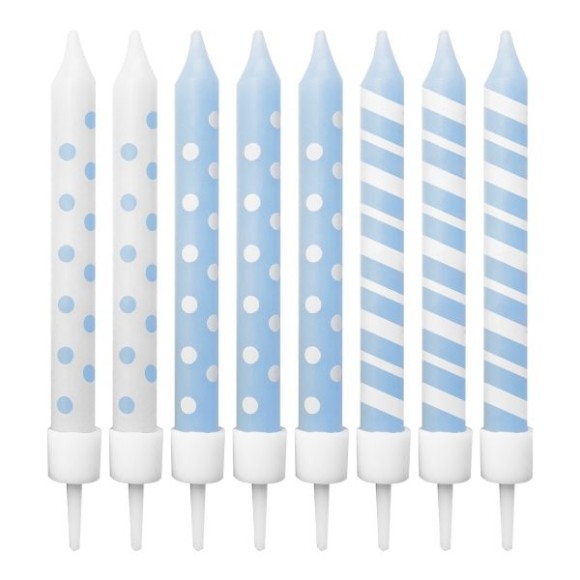 Ref. 4406 – Vela azul estampada / Medidas: 0,75x8cm / Embalagem com 8 unidades.