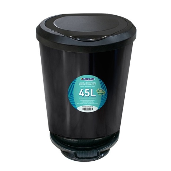 CESTO DE LIXO PLÁSTICO COM PEDAL 45 LITROS PRETO ARQPLAST