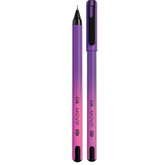 Caneta esferográfica Cis Move / Ponta tipo agulha / Ponta extrafina de 0.7mm / Tampa ventilada com clip / Cor da tinta: Roxa / Registro Inmetro: 001698/2021.