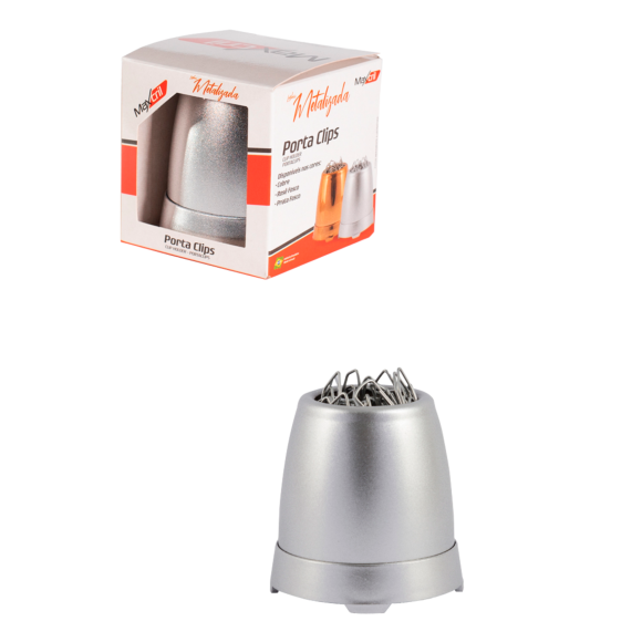 PORTA CLIPS METALIZADO PRATA MAXCRIL