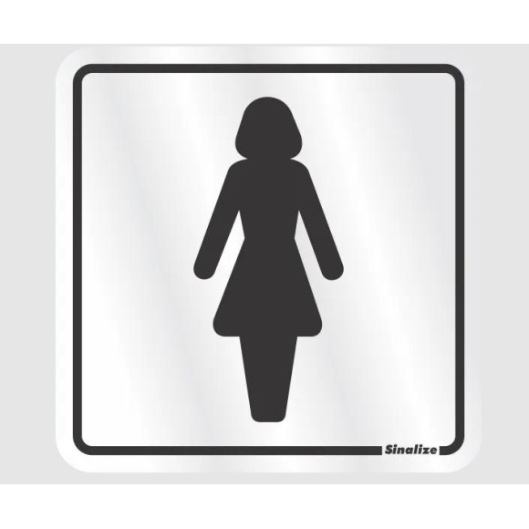 Placa sanitário feminino / Medidas: 12x12cm / Embalagem contém: 1 placa / Material: Alumínio / Impressão: Aluprint / Fixação: Autoadesiva