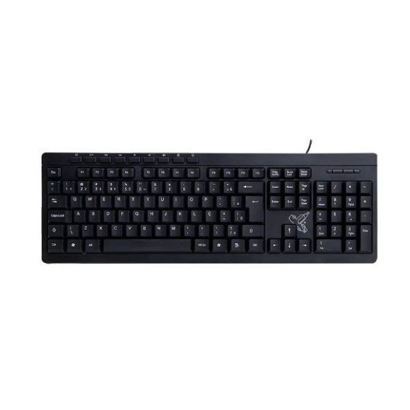 Teclado multimídia SK-2030 com fio / Conexão: USB 2.0 / Compatibilidade: Windows XP/Vista/7 e Superior/MAC / Comprimento do cabo: 1,35cm / Teclas: 107 + 9 multimídia / Padrão ABNT2