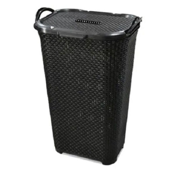 CESTO DE ROUPAS RATTAN TAMPA BASCULANTE PRETO ARQPLAST