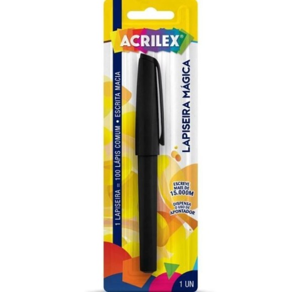 Especificação: Lapiseira Magica Acrilex / Escreve mais de 15.000M / Dispensa o uso de apontador / Composição: Corpo e tampa: Resina termoplástica. Ponta: Grafite e carga inerte.