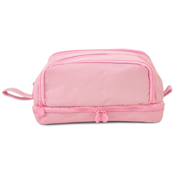 ESTOJO TECIDO MÉDIO 4 DIVISÕES ROSA PASTEL POLIBRAS