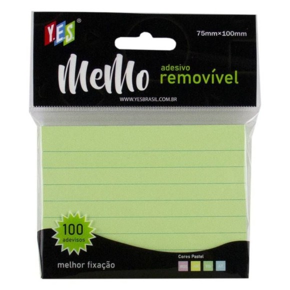 BLOCO ADESIVO 75x100 VERDE PAUTADO 100FLS YES