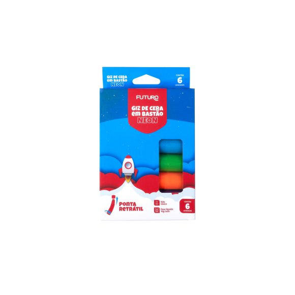2. GIZ DE CERA 6 CORES EM BASTÃO RETRÁTIL NEON FUTURO