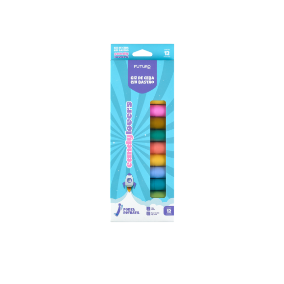 GIZ DE CERA EM BASTÃO RETRÁTIL 12 CORES CANDY LOVERS FUTURO