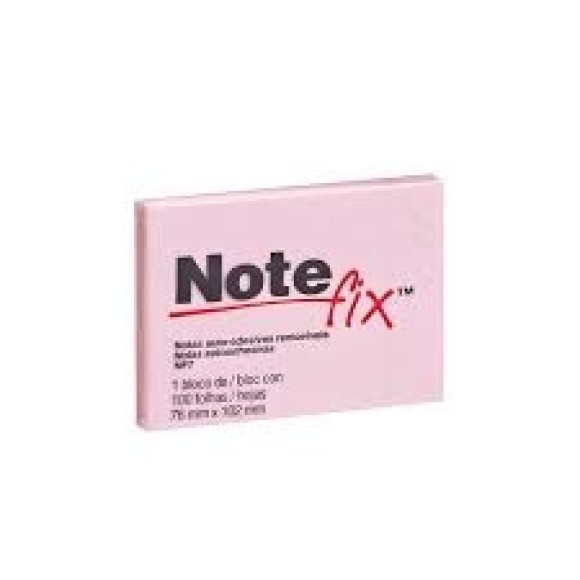 Detalhes: Bloco adesivo Note Fix 3M / Cor: Rosa / Bloco com 100fls / Medidas: 76mm x 102mm