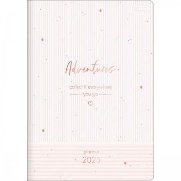 Detalhes: Capa flexível / Capa com detalhe metalizado e com relevo / Folhas para anotações / Folhas em papel creme / Visão anual e mensal / Formato: 178mm x 254mm / Gramatura: 90g/m² / 20 folhas.