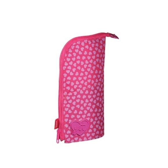 Um compartimento / Fechamento em zíper / Pode ser utilizado em pé sobre a mesa / Material: Poliéster / Formato: 100mm x 200mm.