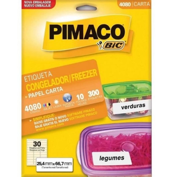 ETIQUETA 4080 CONGELADOR 25,4x66,7MM 10FLS 30 POR FOLHA PIMACO
