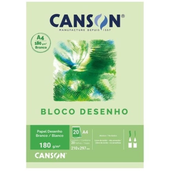 Especificação: O Bloco Canson Desenho é o produto mais icônico da marca Canson, sendo frequentemente utilizado nas escolas e cursos livres de Artes. Com uma textura levemente granulada, este papel é especialmente indicado para desenhos de técnica seca como á lápis de cor, pastel, carvão e grafite, garantindo uma ótima aderência e vivacidade das cores.