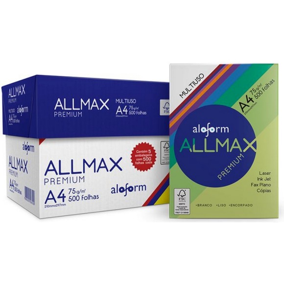 Tamanho A4 210mm x 297mm / 75g / Caixa Com 2.500 Folhas ( 5 Pacotes Com 500)