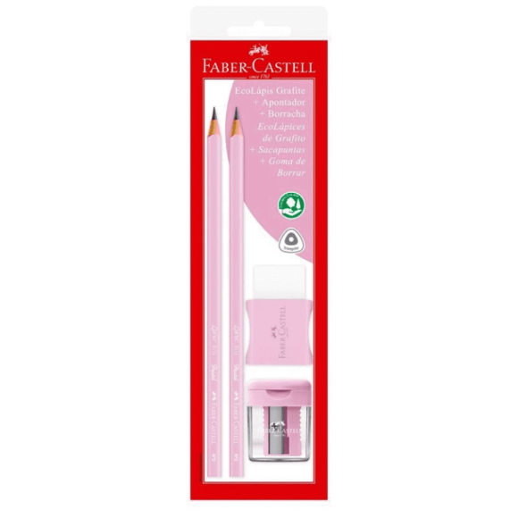 KIT ESCOLAR ROSA PASTEL 2 LÁPIS PRETO+APONTADOR+BORRACHA FABER CASTELL