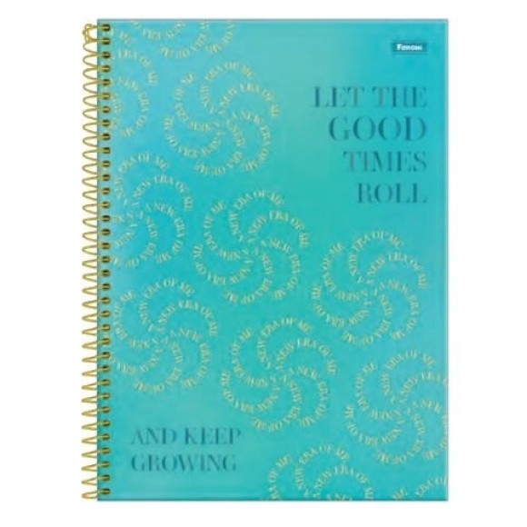 Detalhes: Capa dura / Laminação fosca / Capa com detalhes metalizados / Parte interna da capa decorada / Espiral dourado / Bolsa plástica / Folha de adesivos / Índice/separador de matérias decorados / Folhas pautadas decoradas / Formato: 200mm x 275mm / 10 Matérias / Gramatura: 56g/m² / 160 Folhas.
