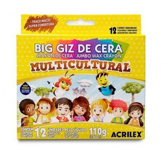 GIZÃO DE CERA 12 CORES MULTICULTURAL REF.9122 ACRILEX