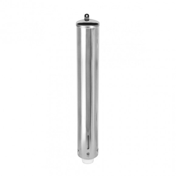 Dispenser em aço inox para copo de café de 50Ml / Confeccionados em aço inoxidável AISI 430, possui garras na base para ajuste da saída do copo e duas pequenas abas para fixação na parede / Mantém os copos organizados e protegidos contra sujidade / Acompanha uma tampa em aço inox e kit com 2 parafusos e buchas para fixação na parede / Capacidade: 100 copos (aproximadamente) / Medidas: 450mm (altura) x 62mm (diâmetro)